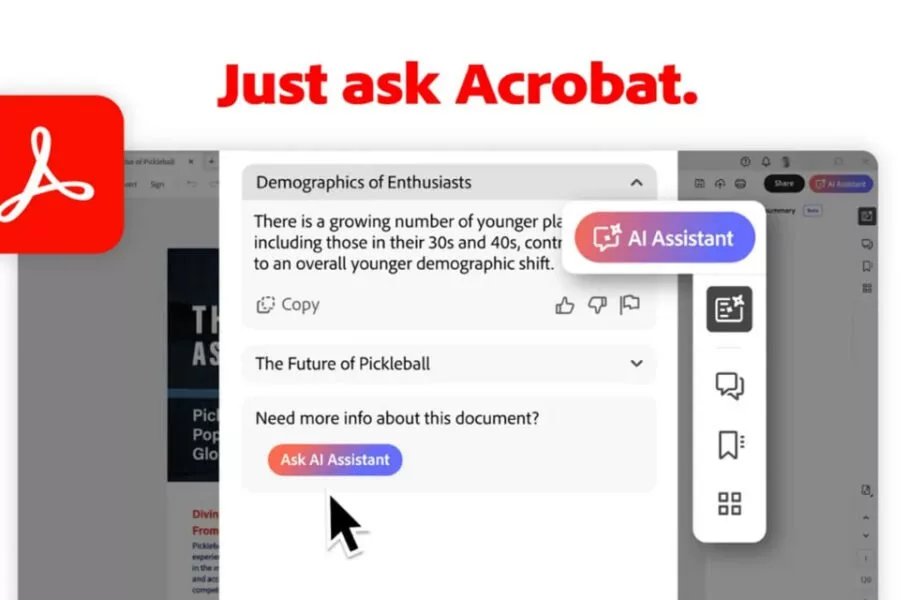 در بیانیه مطبوعاتی Adobe از این ابزار جدید بهعنوان «دستیار هوش مصنوعی آکروبات» یاد شده و این کمپانی از آن را یک «موتور مکالمه» عنوان کرده است که میتواند فایلها را خلاصه کند، به سؤالات کاربران پاسخ دهد و موارد بیشتری را براساس محتوا به آنها پیشنهاد کند. هوش مصنوعی ادوبی آکروبات به کاربران اجازه میدهد که برای دریافت اطلاعات موردنیاز خود «بهراحتی با اسناد چت کنند.»